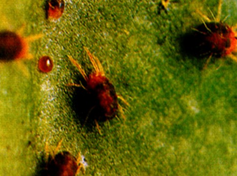 主要以若螨、成虫在叶背刺吸汁液,被危害叶片叶绿素受到破坏,有铁锈色,叶片呈“干糊状”,手触摸易脆。除直接使植物出现褪绿、黄点、褐斑、落叶等症状外,还可传播各种病原体,引起其他病毒病,高温干燥季节易暴发成灾。