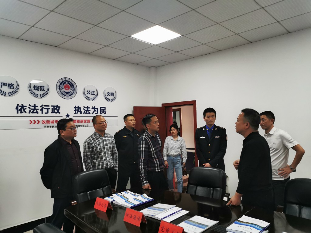 4月16日下午,市城管局党组书记、局长李晓彤带队赴城市五区,实地检查各城管中队规范化建设工作,市城市管理行政执法支队支队长宋光辉、市城管局执法监督科科长李向红及各区城管部门负责人等参加检查。